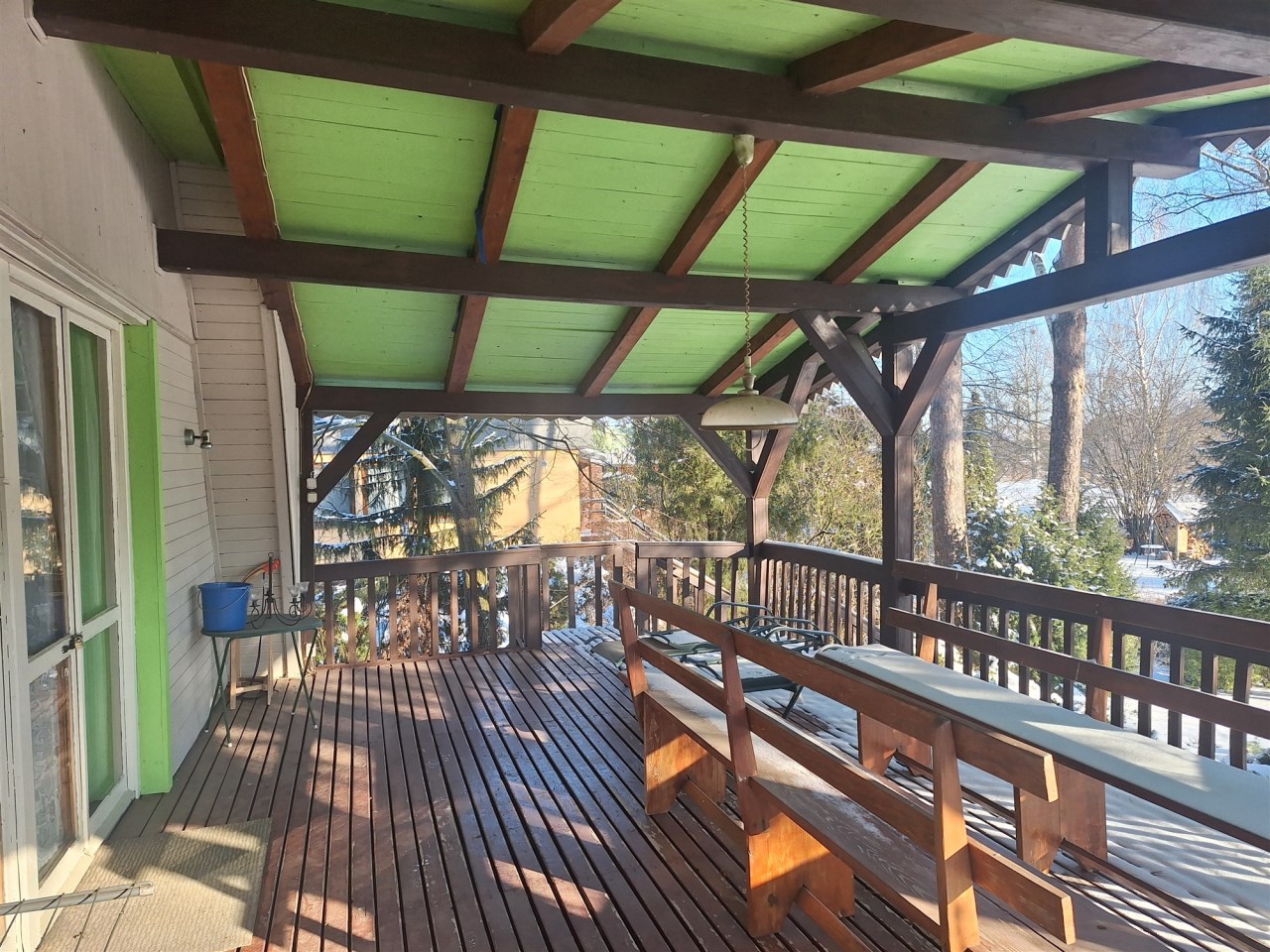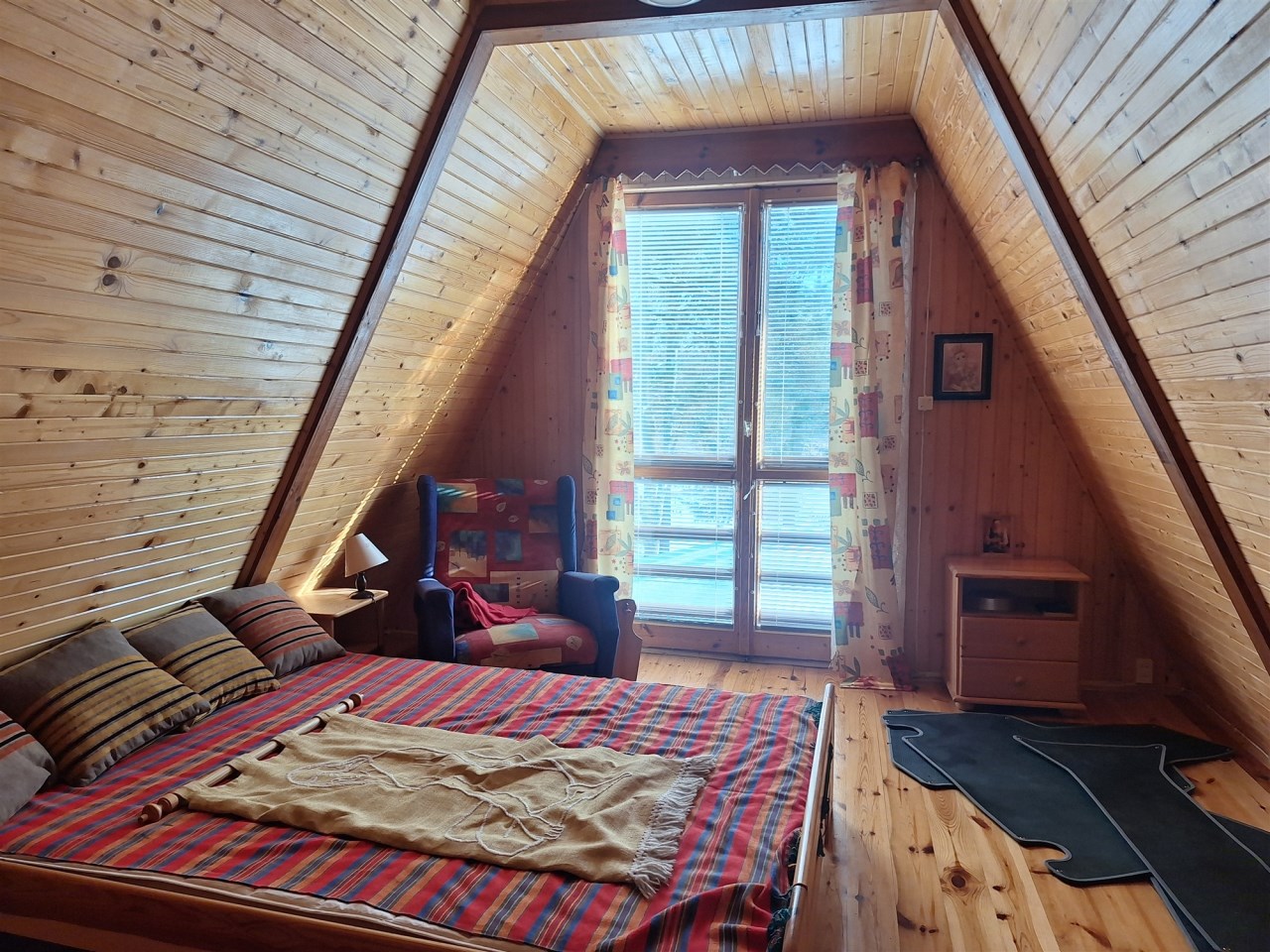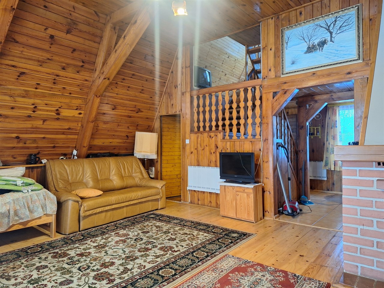 Dom jest 3 - kondygnacyjny, z czego przyziemna kondygnacja jest murowana. Dom ma powierzchnię zabudowy około 100 mkw, a jego powierzchnia całkowita wynosi około 200 mkw. Dom posiada grzejniki elektryczne i duży kominek. Dom został dodatkowo docieplony w momencie wymiany dachu (więźba dachowa jest stalowa). Do remontu: łazienka, ewent wymiana okien, malowanie elewacji. Na działce dodatkowo nowa wiata z przeznaczeniem na auto lub łódź.