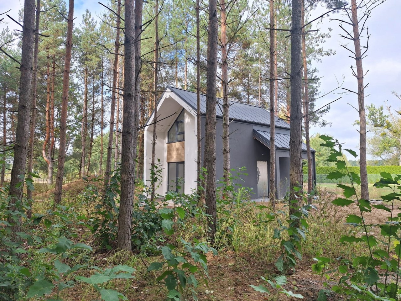 Nowoczesna stodoła w stanie deweloperskim, o konstrukcji szkieletowej we wsi Marynino obok Serocka. Domek posadowiony na urokliwej zalesionej działce o powierzchni 1133 mkw w kształcie prostokąta. Dom wkomponowany w sosnowy las, co czyni miejsce bardzo klimatycznym.