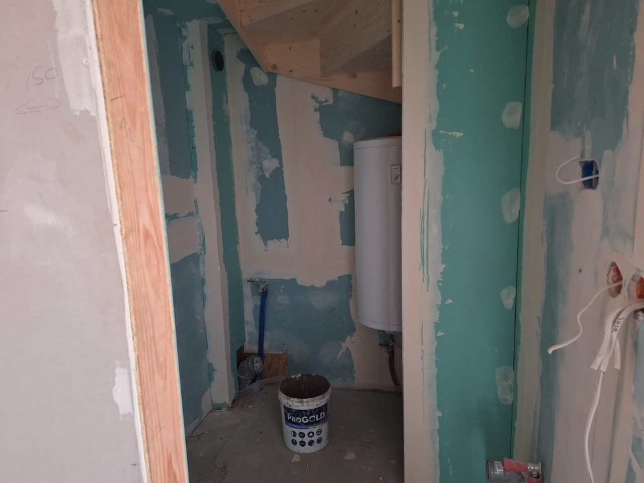 Media: prąd, woda (studnia), szambo, ogrzewanie domu: panele grzewcze energooszczędne z cyrkulacją powietrza ścienne na podczerwień, dostosowane i zoptymalizowane do powierzchni domu. Przewidziane są następujące grzejniki w domu: salon 360W, kuchnia z jadalnią 720W, toaleta z kabiną mata grzewcza, poddasze: pokój nr 1 360W, pokój nr 2 360W, pokój nr 3 (lub łazienka) mata grzewcza.