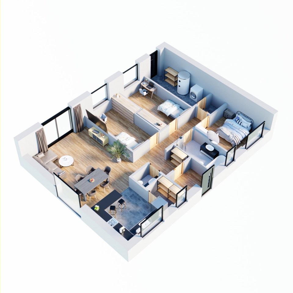 - 3 sypialnie 12,98m2; 13,12m2; 11,34m2