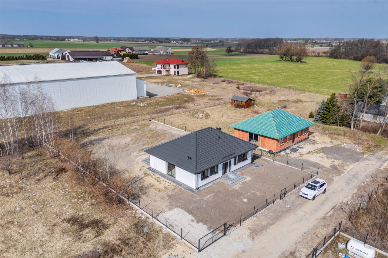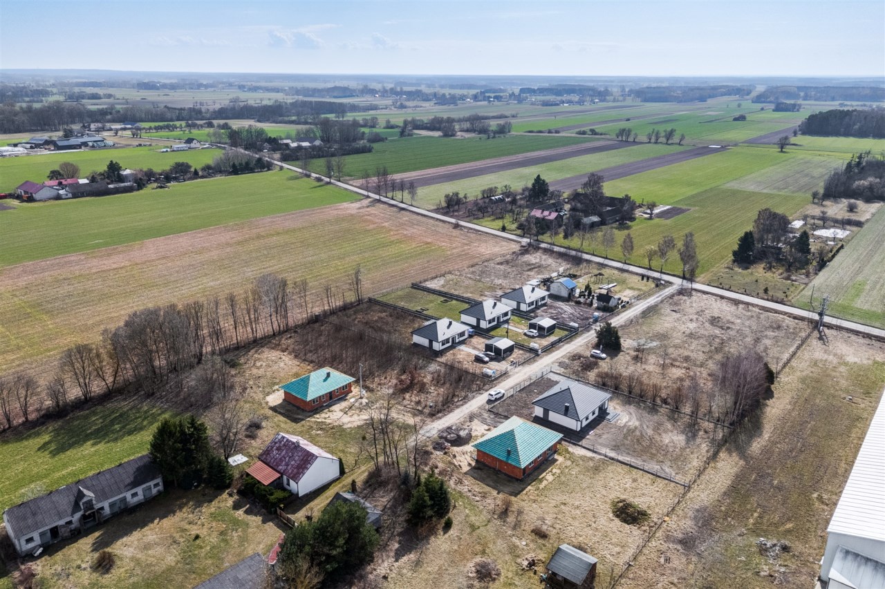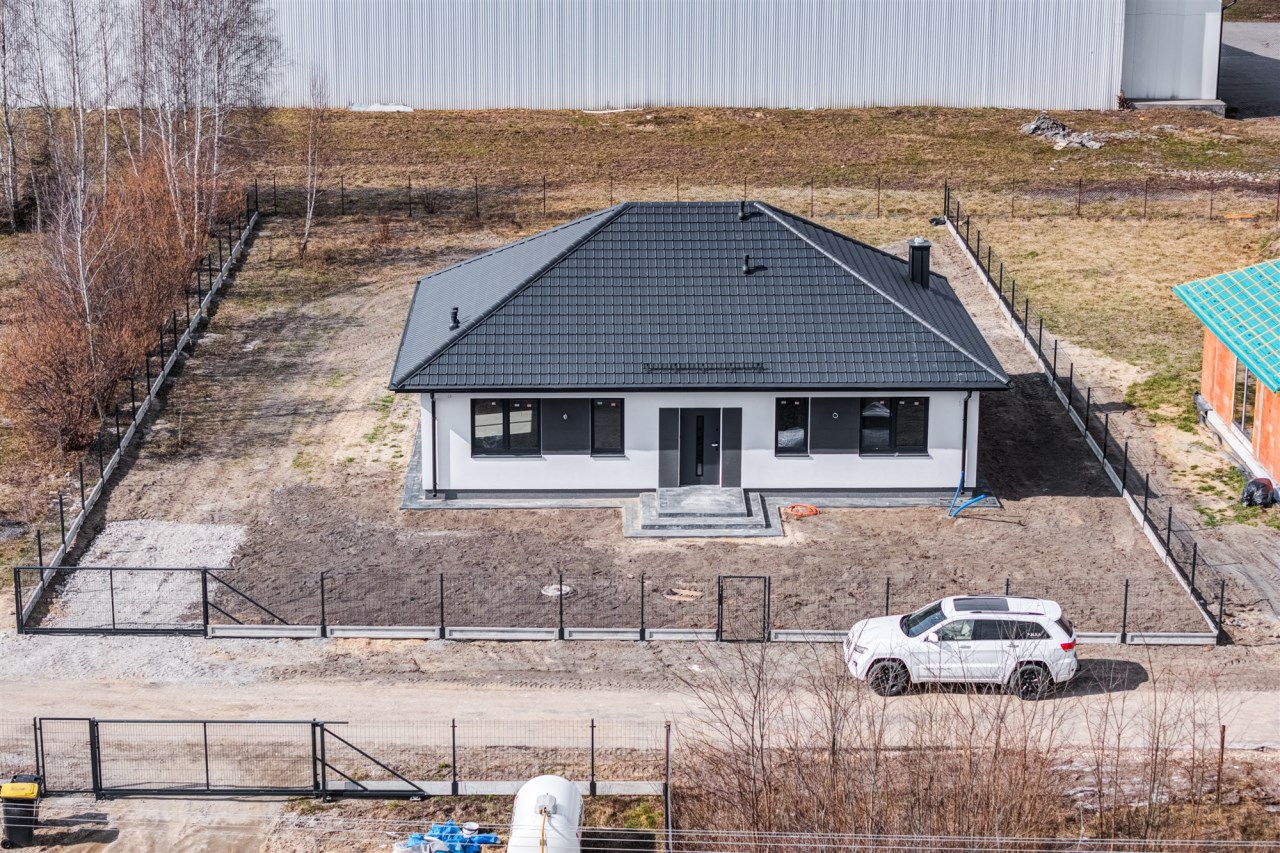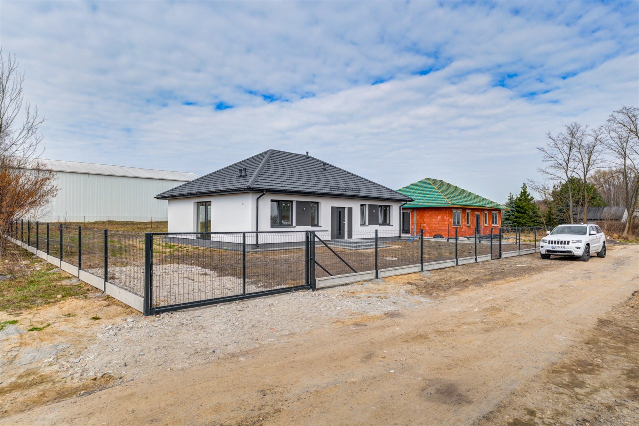 Drugi etap inwestycji w w sielskiej wsi Kamionna gm. Winnica, powiat pułtuski, koło Nasielska. W ofercie dom parterowy o powierzchni 115 mkw w stanie deweloperskim, posadowiony na działce 1160 mkw (nr ew. 32/26). Dom wzniesiony w technologii tradycyjnej, murowanej, ściany z pustaków ceramicznych. Dach pokryty blachodachówką w kolorze grafit. Okna trzyszybowe. Rozprowadzona instalacja wodna, elektryczna i ogrzewanie podłogowe (ogrzewanie do wyboru: gaz, pellet, pompa ciepła). Działka zagospodarowana: ogrodzona systemem panelowym z bramą i furtką; chodnik do drzwi wejściowych; opaska wokół domu; taras. Garaż blaszany 2-stanowiskowy na fundamencie za dodatkową opłatą 20 tys, wiata otwarta 2-stanowiskowa w cenie.
