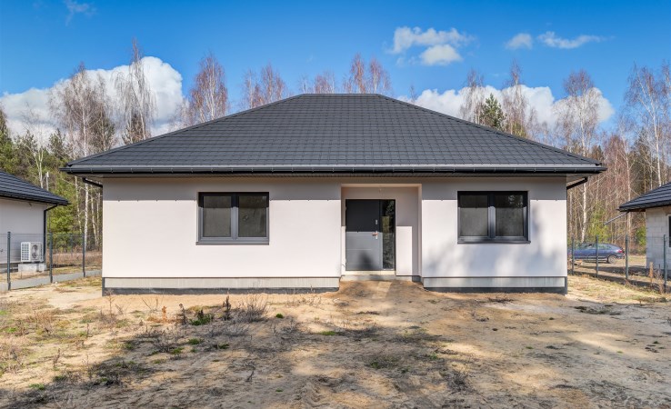 Dom jednorodzinny parterowy o pow. użytkowej 115 mkw do indywidualnej aranżacji, posadowiony na 1140 mkw działce, w spokojnej zielonej miejscowości Kępiaste gm. Pokrzywnica niedaleko miasta Serock. Zbudowany z solidnych materiałów tj. tynk twardy wew. i na zew., pustak suporex. Dach pokryty blachodachówką w kolorze grafit. Okna trzyszybowe. Rozprowadzona instalacja wodna i elektryczna. Działka ogrodzona systemem panelowym z bramą i furtką. Do wykonania przez przyszłego Inwestora: podjazd, taras, wiata lub garaż wolnostojący na auto.