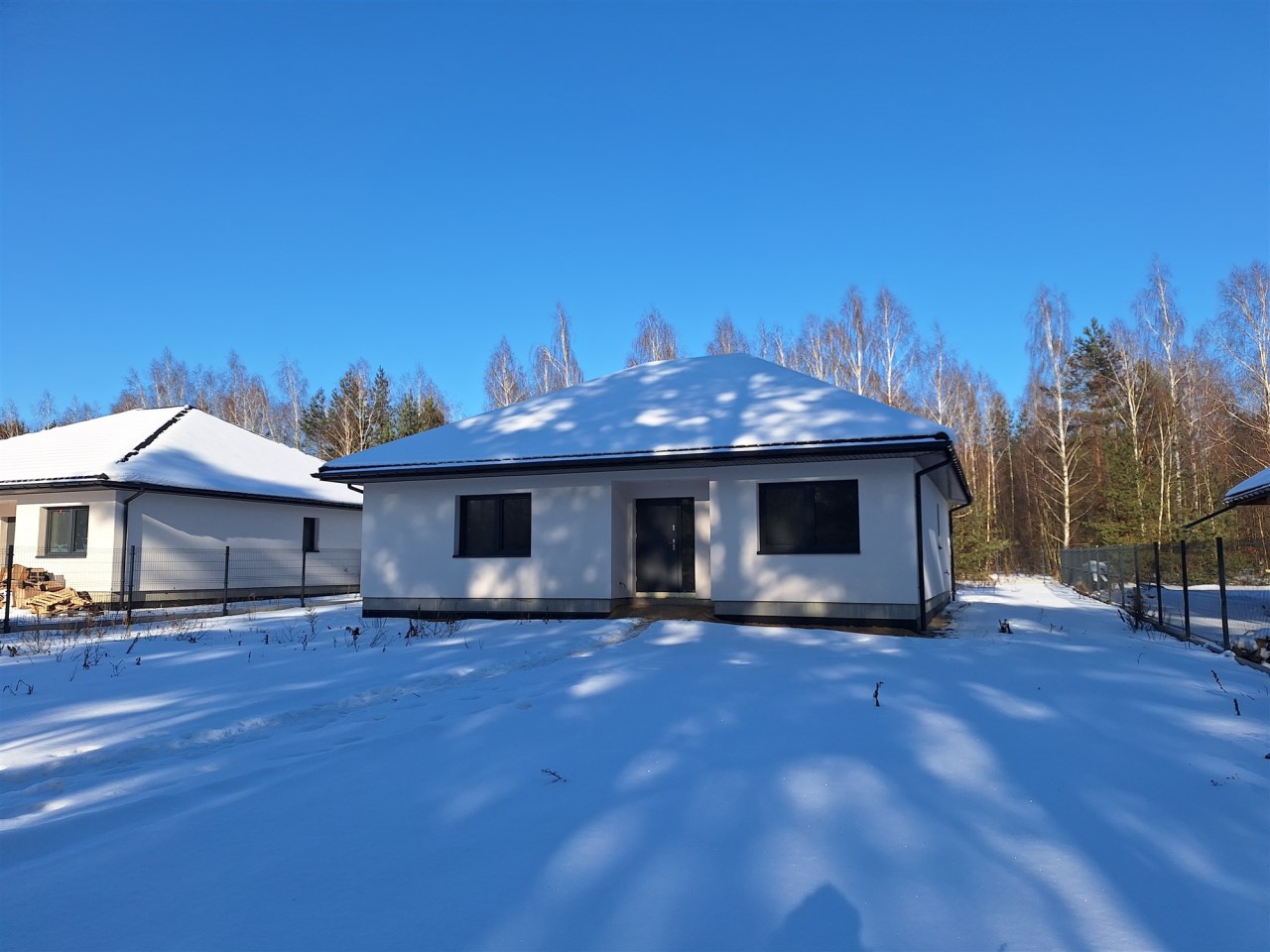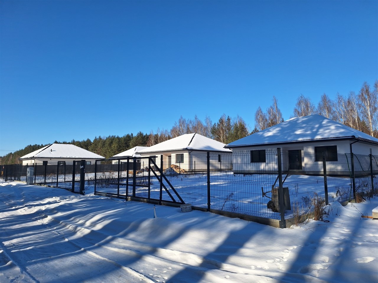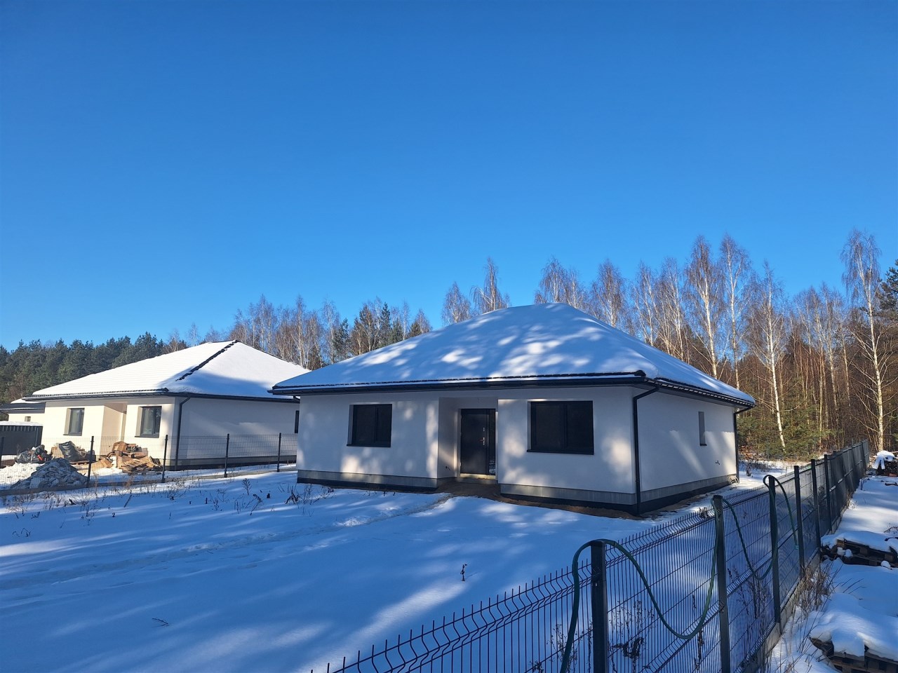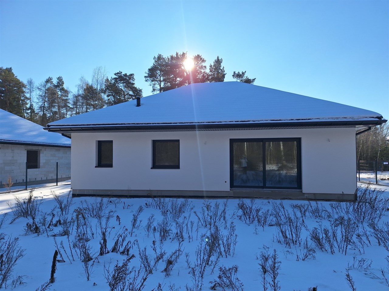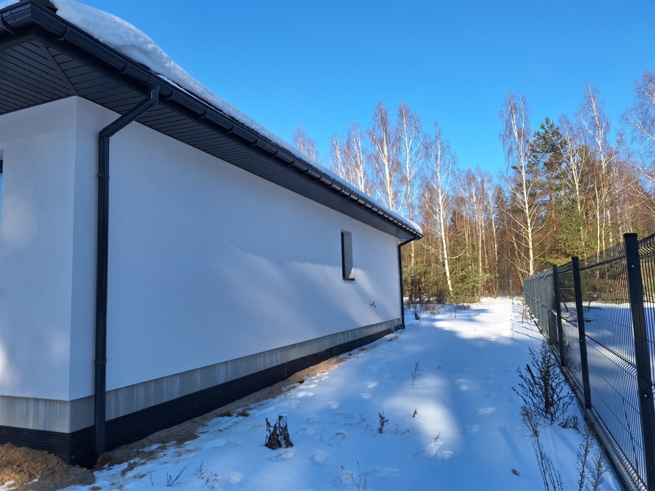 Dom jednorodzinny parterowy o pow. użytkowej 117,46 mkw (125,38 mkw całkowitej) w stanie do wykończenia - deweloperskim, posadowiony na działce o powierzchni 1000 mkw, w spokojnej i zielonej miejscowości Kępiaste gm. Pokrzywnica niedaleko miasta Serock. Zbudowany z solidnych materiałów tj. tynk twardy wew. i na zew., pustak suporex. Dach pokryty blachodachówką w kolorze grafit. Okna trzyszybowe. Rozprowadzona instalacja wodna, elektryczna i grzewcza (ogrzewanie podłogowe), system rekuperacji. Działka ogrodzona systemem panelowym z bramą i furtką. Do wykonania przez przyszłego Inwestora: opaska z kostki wokół domu, podjazd, taras.