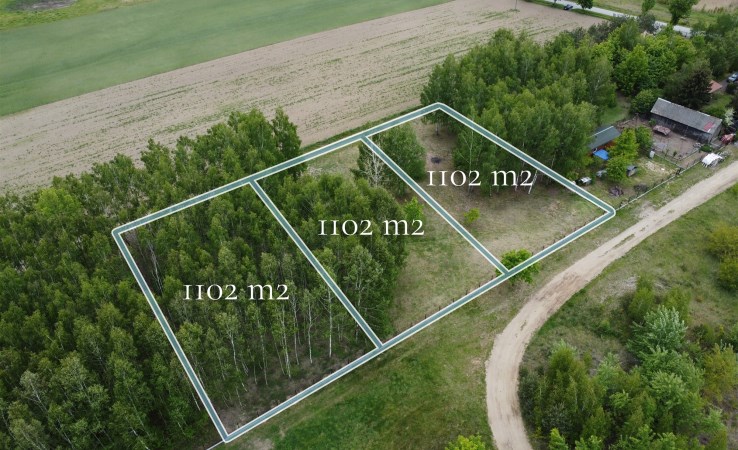 Działka o powierzchni 2204 mkw w kształcie kwadratu o wymiarach 48 x 46 m, składająca się z dwóch działek po 1102 mkw (wym. 24 x 46 m). Położona na początku wsi Trzepowo (granica z wsią Murowanka). Grunt w połowie zalesiony brzozami (możliwość wycinki, to nie jest las wg użytków). Wydane zostały bezterminowe warunki zabudowy dla poszczególnych działek jak rownież dla 2 działek łącznie. Działka ma dostęp do drogi publicznej drogą wewnętrzną na współudziałach. Działka ogrodzona z 3 stron systemem panelowym na bloczkach betonowych, bez frontu (wykonane w 2025). Oczyszczona, zadbana.